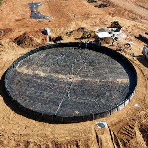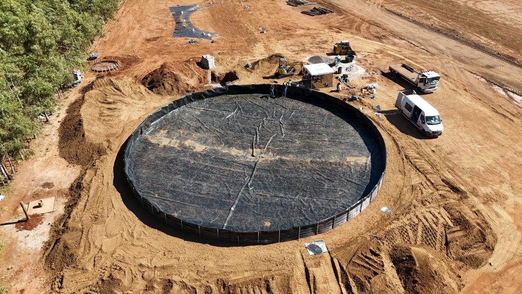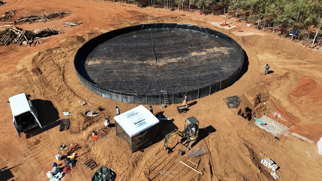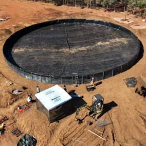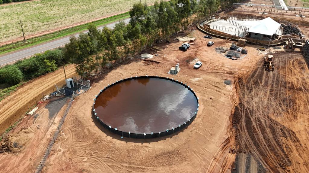 O reservatório foi construído com estrutura metálica e revestido com geomembrana PEAD de 1,0 mm, garantindo alta resistência mecânica, estanqueidade e durabilidade mesmo em uso contínuo. A solução adotada oferece segurança hídrica para a fazenda, otimiza o manejo da água e reduz perdas por infiltração, atendendo às necessidades do cliente com qualidade técnica e eficiência na execução.