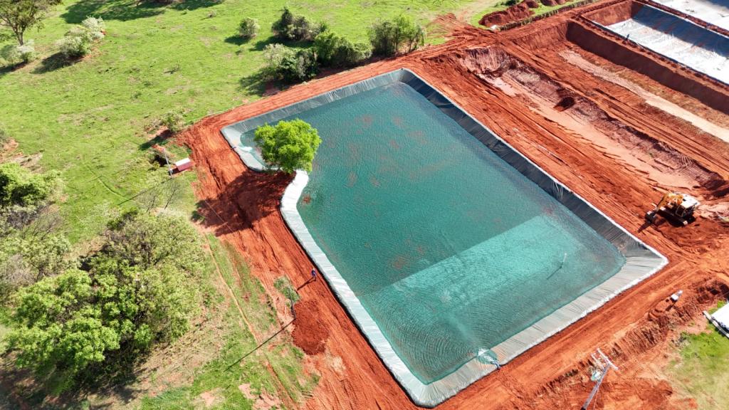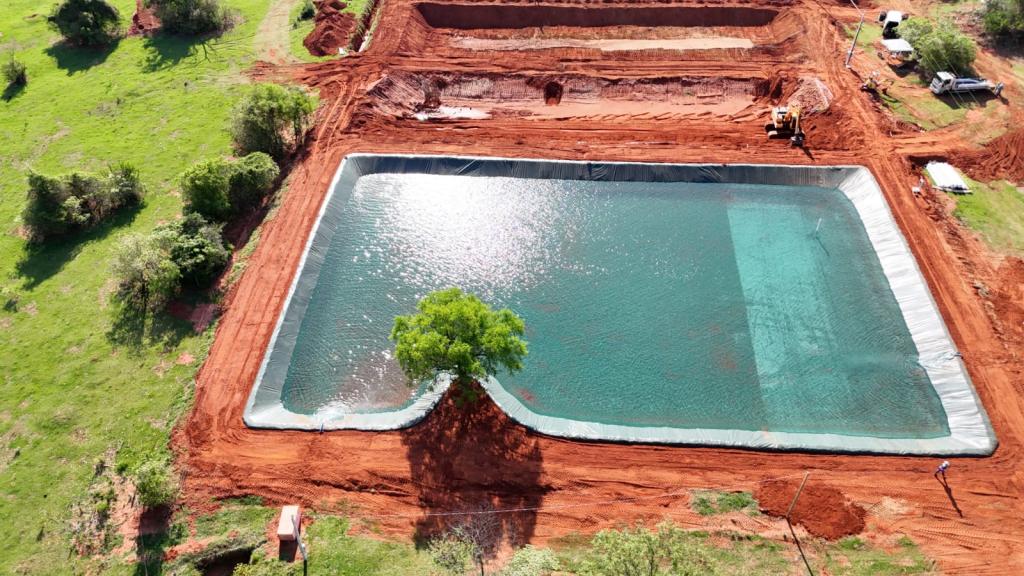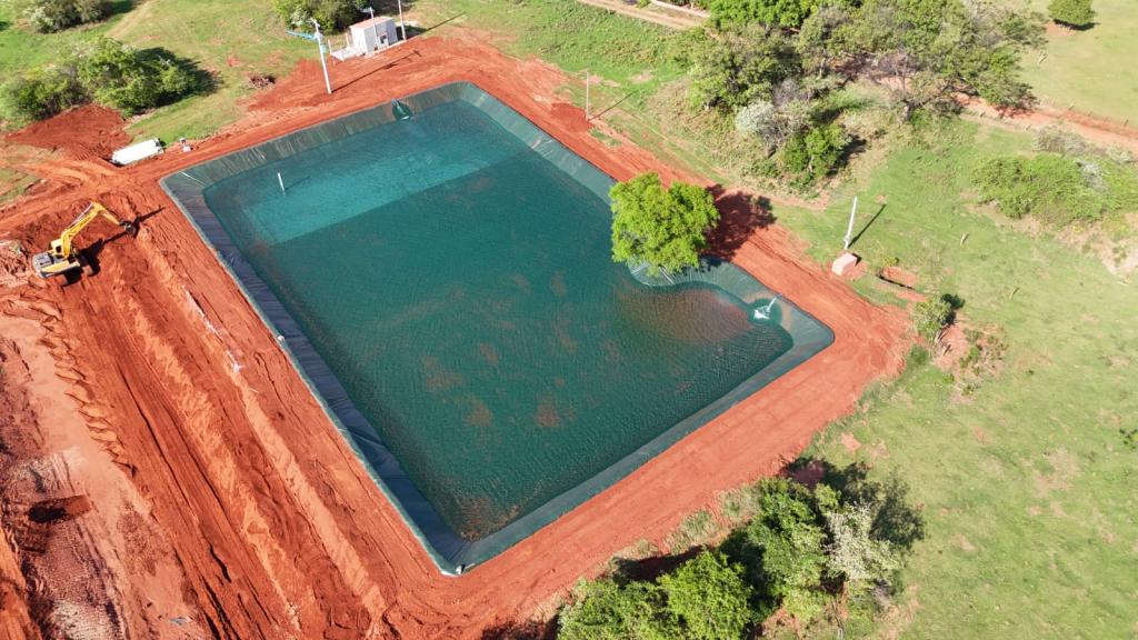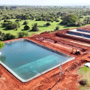 Nesta obra a Multipesca executou o conjunto de tanques escavados destinados à piscicultura em área rural de Panorama – SP. Os viveiros foram abertos e modelados aproveitando o relevo natural, recebendo posteriormente acabamento com geomembrana para garantir estanqueidade, segurança das estruturas e melhor qualidade da água. O sistema em série facilita o manejo, a renovação da água e o acompanhamento dos lotes de peixes, oferecendo ao produtor uma estrutura preparada para ampliar a produção aquícola com eficiência e confiabilidade.